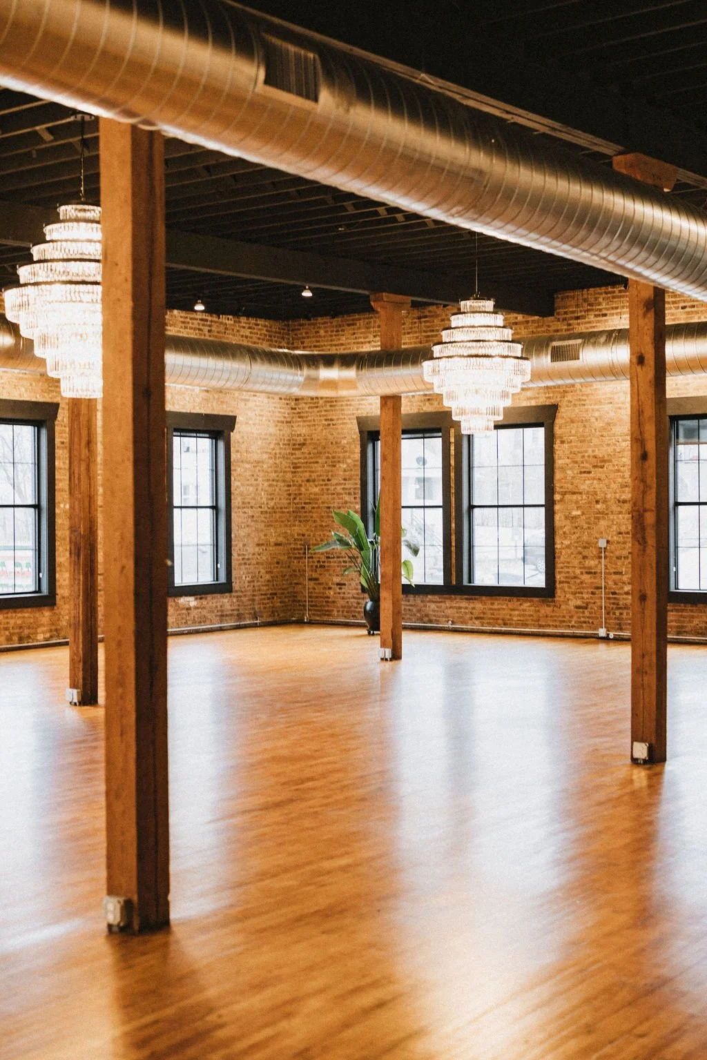 Exposed brick, warm wood tones, and natural light create a space that feels both elevated and approachable. Every detail reflects the building’s history while offering a polished, modern atmosphere—perfect for gatherings that deserve something more memorable than a standard rental room.